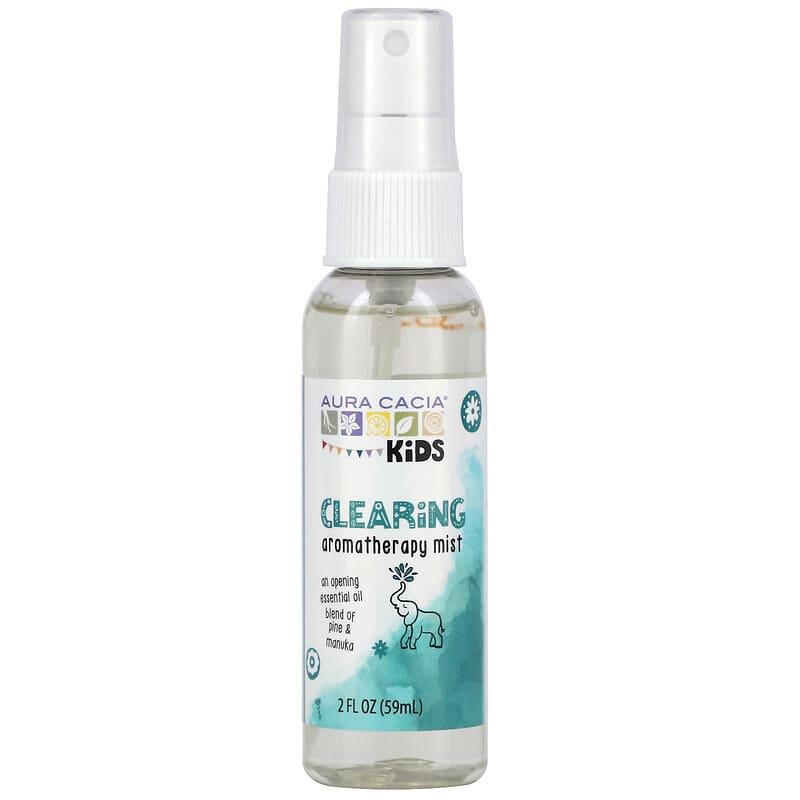 Scented with Pure Essential Oils Paraben Free Authenticity Verified Not Tested on AnimalsAn opening essential oil blend of pine & manuka. A clearing mist for opening and moving through stagnation. Aura Cacia Kids Clearing Aromatherapy Mist is an opening blend scented with pure essential oils. Mists provide an easy and safe way to incorporate essential oils into daily routines and are formulated for kids ages 4-11. Clearing Aromatherapy Mist features oils that promote opening such as balsam, pine, tea tree and manuka.