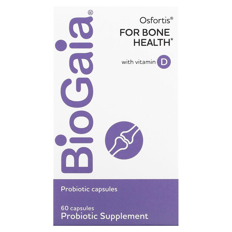 For Bone HealthProbiotic CapsulesProbiotic SupplementGroundbreaking Probiotics Driven by ScienceCountry of Origin: SwedenMilk FreeLactose FreeBioGaia Osfortis is a Dietary Supplement containing the patented lactic acid bacterium Lactobacillus** reuteri Osfortis® (L. reuteri ATCC PTA 6475) and vitamin D3. Vitamin D contributes to the maintenance of normal bones. Because L. reuteri Osfortis naturally colonizes humans it has a strong adaptation to persist and interact with humans. L. reuteri Osfortis has been tested in clinical trials and proven effective and safe. **Previously named lactobacillus