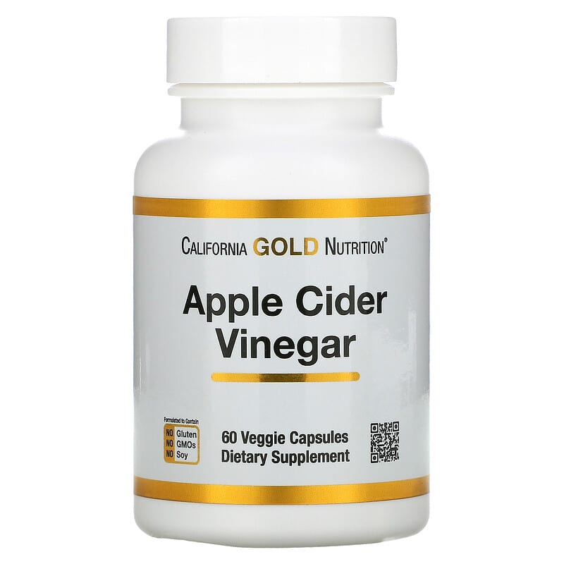 California Gold Nutrition Apple Cider Vinegar features Organic Apple Cider Vinegar powder in vegetarian capsules.