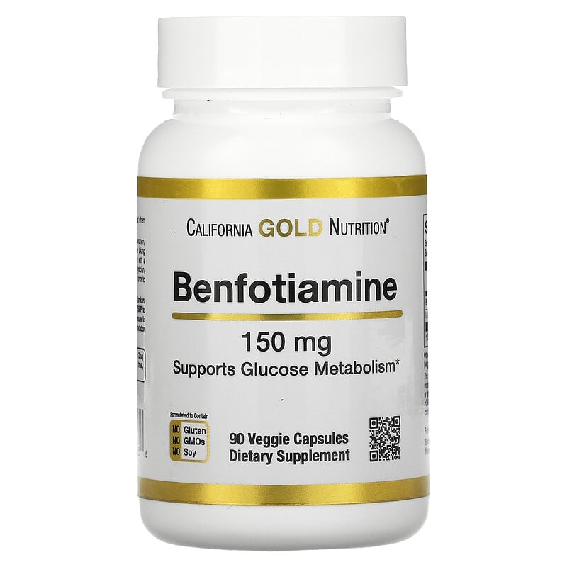 California Gold Nutrition Benfotiamine, 150 mgFeaturing BenfoPure® BenfotiamineSuitable for Vegetarians and VegansSupports Glucose Metabolism*Formulated without Gluten, GMOs, or Soy 100% Gold Guarantee