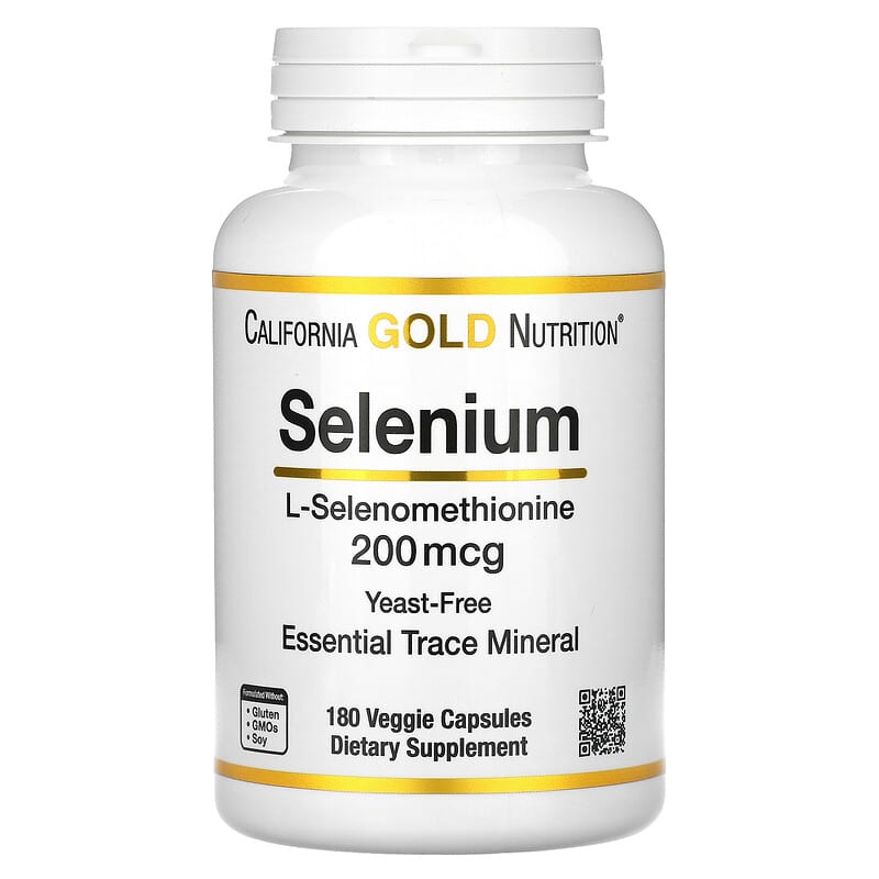 California Gold Nutrition Selenium L-Selenomethionine Yeast-Free Essential Trace Mineral Antioxidant Support* Helps to Support Thyroid Health and Immune System* Suitable for Vegetarians and VegansFormulated without Gluten, GMOs, or SoyProduced in a 3rd Party Audited cGMP Registered (Certified) Facility 100% Gold Guarantee
