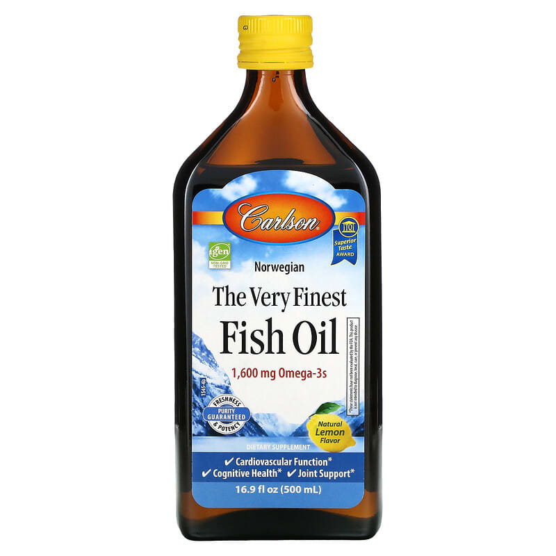 Igen Non-GMO TestedSuperior Taste Award1,600 mg Omega-3sFreshness & Potency Purity GuaranteedDietary SupplementCardiovascular FunctionCognitive HealthJoint SupportGluten FreeNo Artificial PreservativesFriend of The SeaIFOSCarlson – Providing the finest Norwegian omega-3s since 1982Purity GuaranteedThis product is regularly tested by independent FDA registered laboratories. It has been determined to be fresh and fully potent (per AOCS international protocols) and is free of detrimental levels of mercury, cadmium, lead, PCBs and 28 other contaminants.