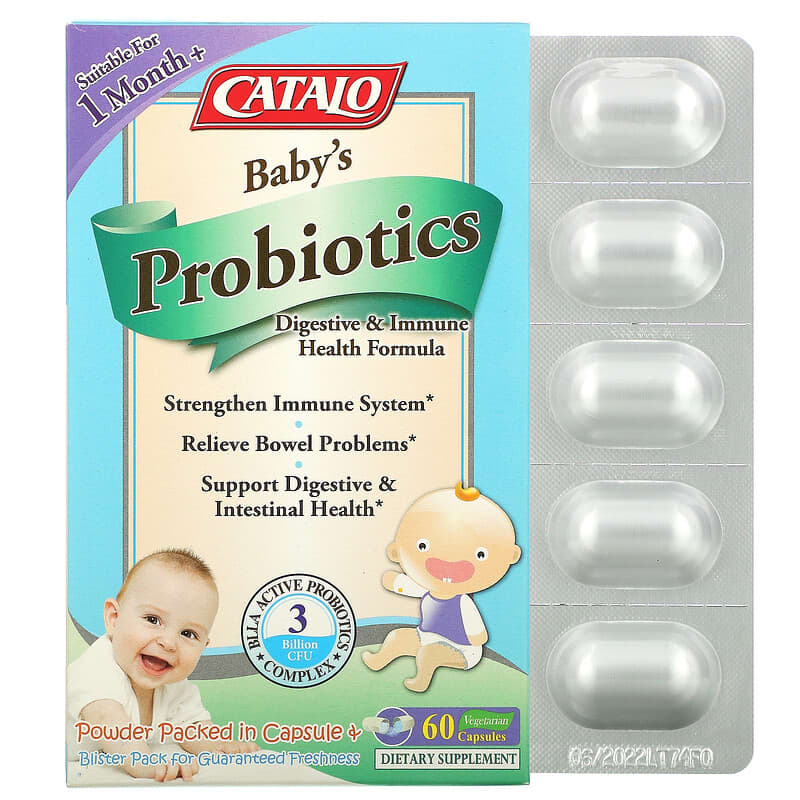 Thực phẩm bổ sung Catalo Naturals Baby's Probiotics Digestive & Immune Health Formula 1 Month+ 3 Billion CFU 60 Vegetarian Capsules chính hãng Catalo Naturals, mã vạch 810399025993, nhập khẩu từ Mỹ