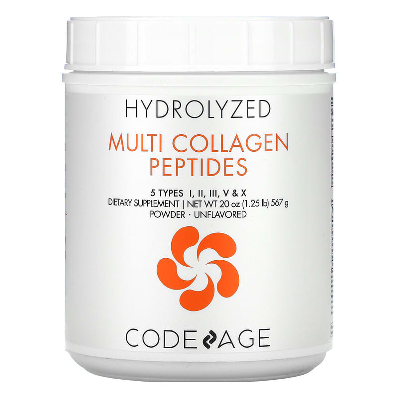 Thực phẩm bổ sung Codeage Hydrolyzed Multi Collagen Peptides 5 Types I II III V X Powder Unflavored 20 oz (567 g) chính hãng Codeage, mã vạch 853919008021, nhập khẩu từ Mỹ