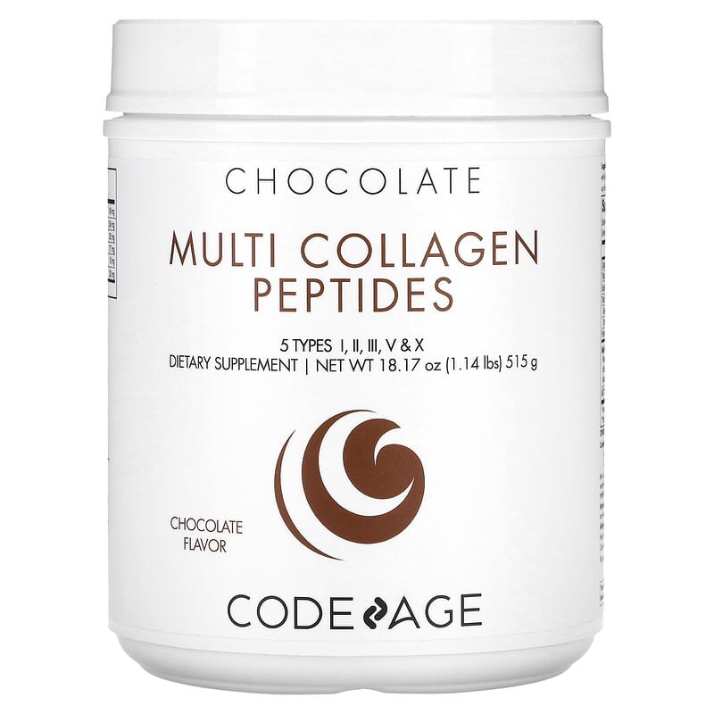 Thực phẩm bổ sung Codeage Multi Collagen Peptides 5 Types Collagen I II III V & X Chocolate 18.17 oz (515 g) chính hãng Codeage, mã vạch 853919008199, nhập khẩu từ Mỹ