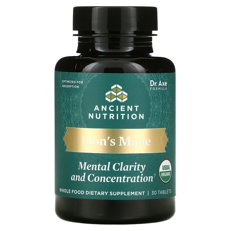 Thực phẩm bổ sung Dr. Axe / Ancient Nutrition Lion's Mane Mental Clarity And Concentration 30 Tablets chính hãng Dr. Axe / Ancient Nutrition, mã vạch 816401025524, nhập khẩu từ Mỹ