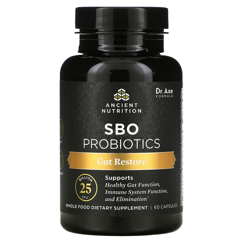 Thực phẩm bổ sung Dr. Axe / Ancient Nutrition SBO Probiotics Gut Restore 25 Billion CFU 60 Capsules chính hãng Dr. Axe / Ancient Nutrition, mã vạch 816401025425, nhập khẩu từ Mỹ