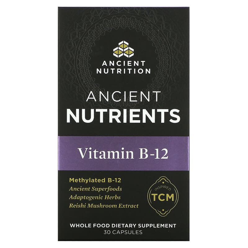 Methylated B-12Inspired TCMWhole Food Dietary Supplement Enzyme ActivatedAncient SuperfoodsAdaptogenic HerbsReishi Mushroom ExtractFermented HerbsAncient Nutrition for the Modern WorldFormulated using the Traditional Chinese Method (TCM) of Super Nutrition, Ancient Nutrients Vitamin B-12 formula combines:The highest-quality, potent and effective co-enzymated Vitamin B-12 (methylcobalamin)Herbal extracts including Fo-TiAncient superfoods including tonic mushrooms, bone broth, liver from New Zealand cattle, wild fish roe and more-for a breakthrough in B-12 supplementation. New Zealand Liver: Ancient nutritional powerhouseFo-Ti Extract: Premier herb for healthy livingRehmannia Extract: Tonic herb of the highest order