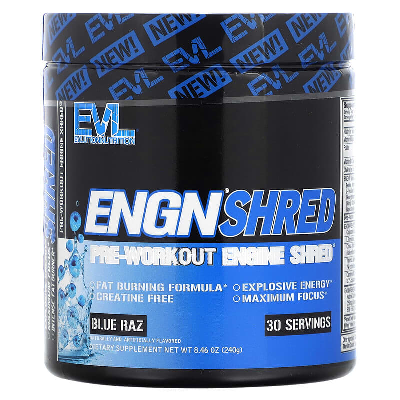 Thực phẩm bổ sung EVLution Nutrition ENGN Shred Pre-Workout Engine Shred Blue Raz 8.1 oz (231 g) chính hãng EVLution Nutrition, mã vạch 710051864123, nhập khẩu từ Mỹ