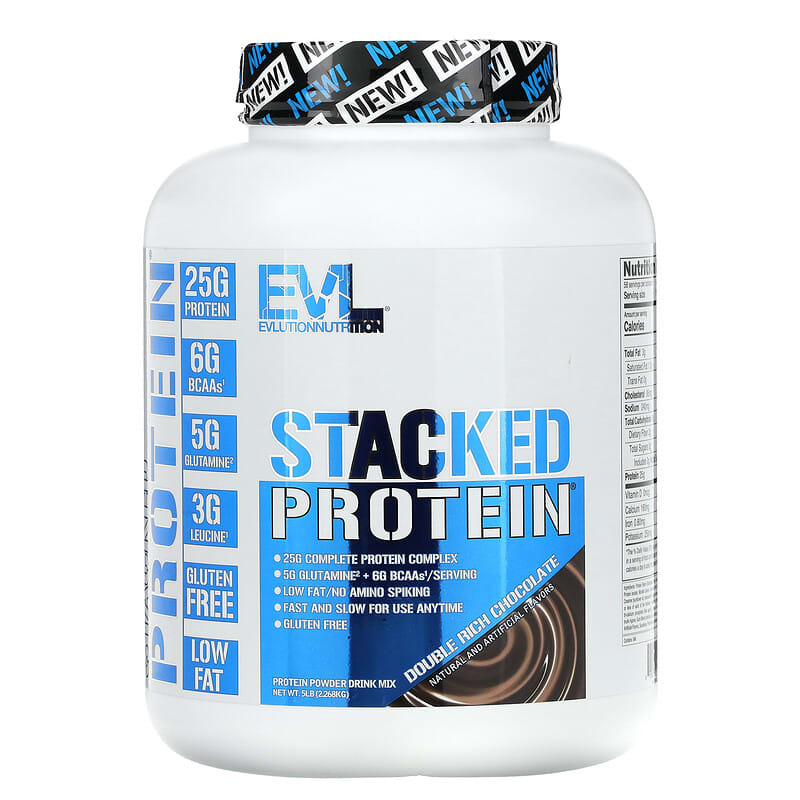 Thực phẩm bổ sung EVLution Nutrition Stacked Protein Double Rich Chocolate 5 lb (2.268 kg) chính hãng EVLution Nutrition, mã vạch 818901025134, nhập khẩu từ Mỹ