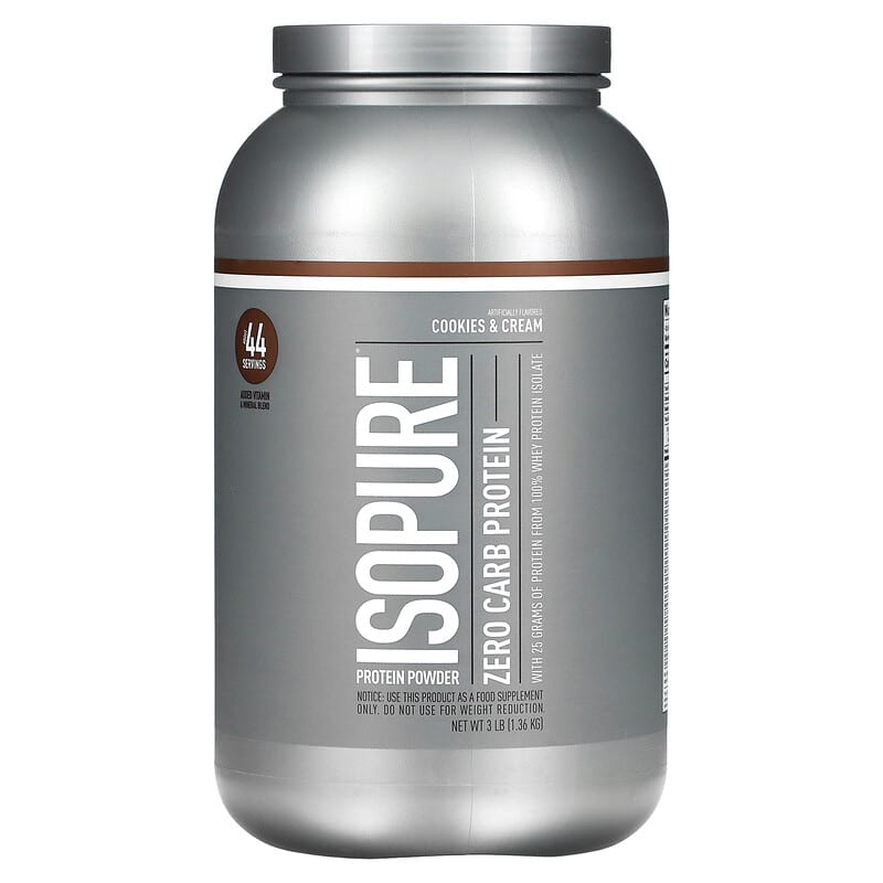 Thực phẩm bổ sung Isopure Zero Carb Protein Powder Cookies & Cream 3 lb (1.36 kg) chính hãng Isopure, mã vạch 089094021979, nhập khẩu từ Mỹ