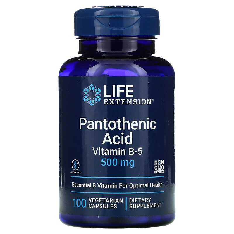 Life Extension Pantothenic Acid Vitamin B-5 500 mg 100 Vegetarian Capsules chính hãng