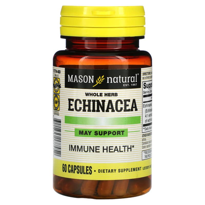 Est. 1967May Support Immune Health Dietary Supplement Soy FreeMason Guarantee – Laboratory TestedcGMP – Certified Good Manufacturing PracticeNever has immune health been more important than in recent times. Natural supplements for immunity are now becoming as popular as multivitamins. And when it comes to immune supplements, taking echinacea extract may be one of the best ways to support your immune system when it is challenged by bacteria and viruses. Your immune system and immunity may be more capable of recovering quickly when it has the support of echinacea extract. It may also be more capable of removing the debris in the bloodstream that happens when foreign bacteria and virus cells are destroyed. Echinacea extract may also help support the immune system’s quick response to an influx of foreign cells in the body, especially when it occurs in mucous membranes.