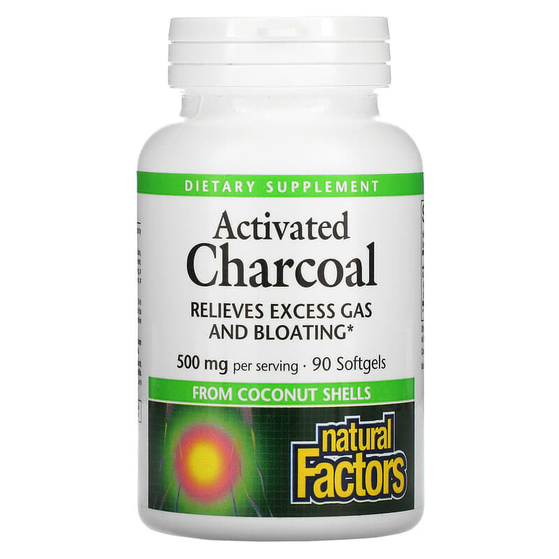 Dietary Supplement Relieves Excess Gas and Bloating 500 mg Per Serving From Coconut Shells Natural Factors Activated Charcoal is made from purified coconut shells and is in a base of coconut oil. Activated Charcoal is a highly absorbant material that has been shown to assist the body’s natural detoxification process while helping relieve excess gas and bloating. Isura®:
