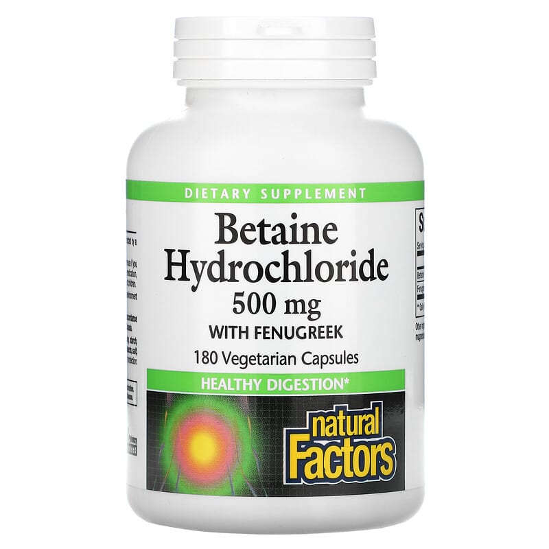 Thông tin chi tiết Natural Factors Betaine Hydrochloride with Fenugreek 500 mg 180 Vegetarian Capsules