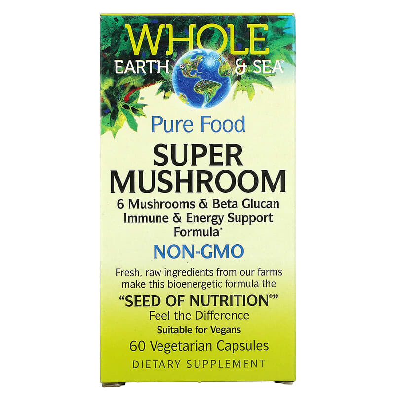 Thực phẩm bổ sung Natural Factors Whole Earth & Sea Super Mushroom 60 Vegetarian Capsules chính hãng Natural Factors, mã vạch 068958355108, nhập khẩu từ Mỹ