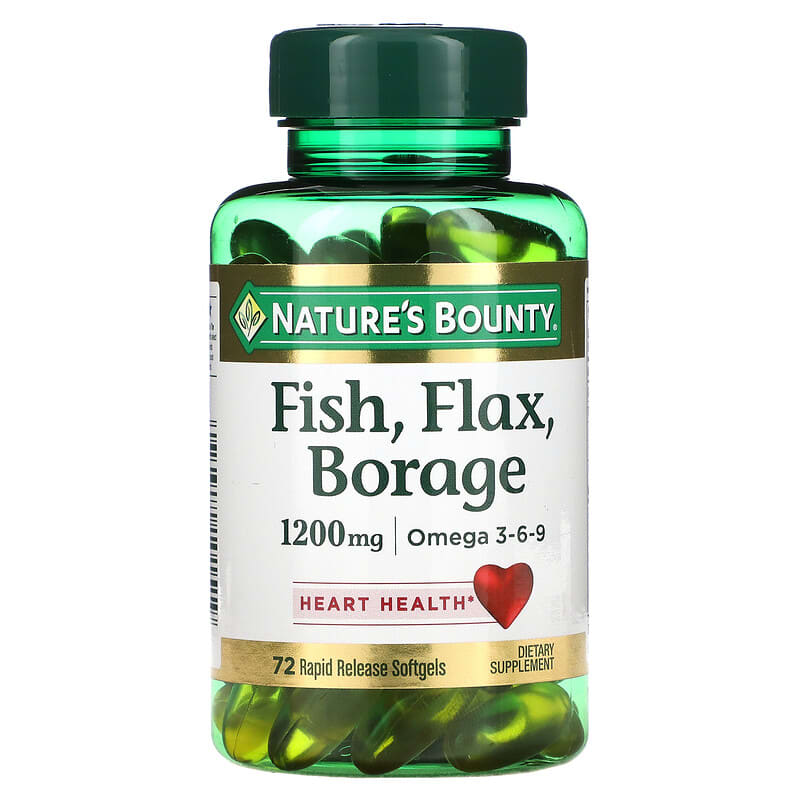 Thực phẩm bổ sung Nature's Bounty Fish Flax Borage 1.200 mg 72 Rapid Release Softgels chính hãng Nature's Bounty, mã vạch 074312101519, nhập khẩu từ Mỹ