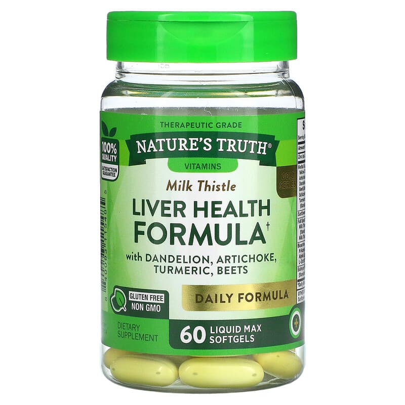Thực phẩm bổ sung Nature's Truth Gold Series Liver Health Formula With Dandelion Artichoke Turmeric Beets 60 Liquid Max Softgels chính hãng Nature's Truth, mã vạch 840093115485, nhập khẩu từ Mỹ