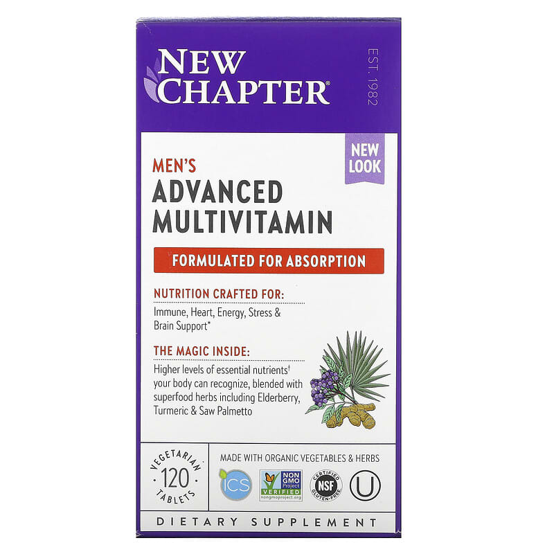 Thực phẩm bổ sung New Chapter Men's Advanced Multivitamin 120 Vegetarian Tablets chính hãng New Chapter, mã vạch 727783003249, nhập khẩu từ Mỹ