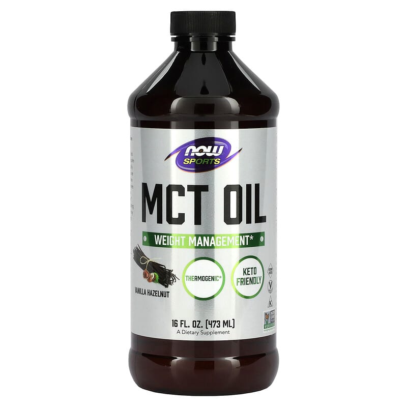 Thực phẩm bổ sung NOW Foods Sports MCT Oil Vanilla Hazelnut 16 fl oz (473 ml) chính hãng NOW Foods, mã vạch 733739022097, nhập khẩu từ Mỹ