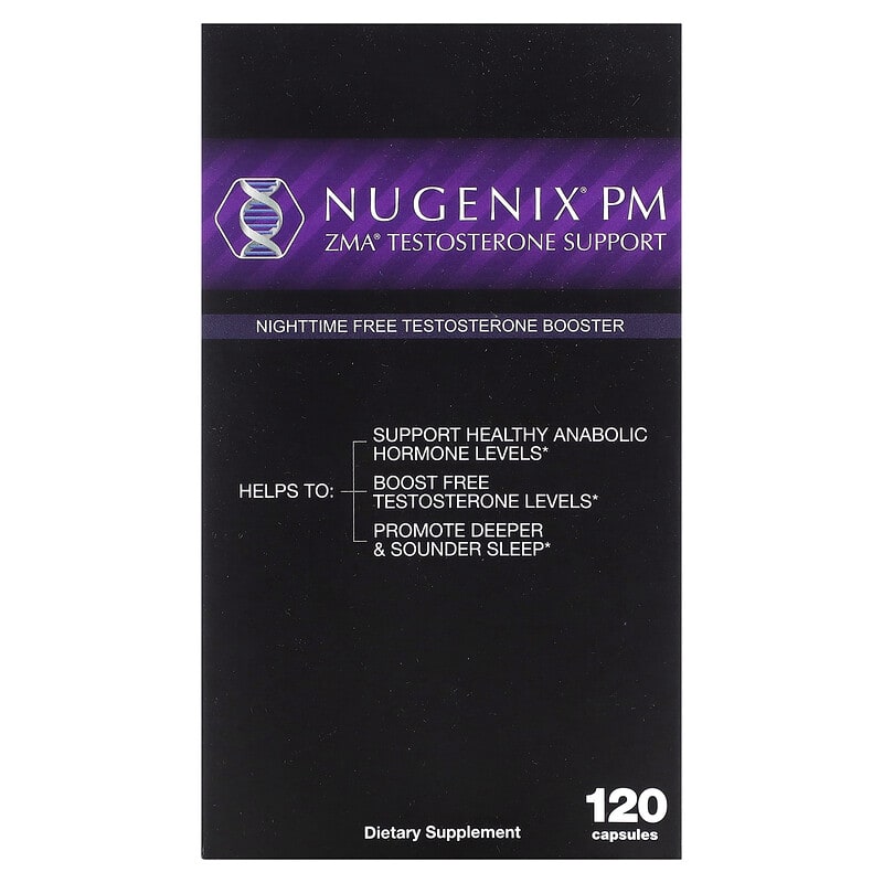 Dietary Supplement Helps To:Support Healthy Anabolic Hormone LevelsBoost Free Testosterone LevelsPromote Deeper & Sounder SleepThe next evolution in nighttime free testosterone supplementation is here. Nugenix® PM is a nighttime free testosterone booster anchored by ZMA®, a clinically researched ingredients to support healthy free testosterone levels. ZMA® is an anabolic support formula containing highly bioavailable zinc l-monomethionine (L-OptiZinc®), zinc aspartate, magnesium aspartate and vitamin B6. ZMA® combined with Tribulus and sleep aid Melatonin, help to support free testosterone, proper sleep and muscle strength.
