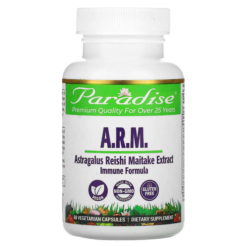 Thực phẩm bổ sung Paradise Herbs A.R.M. Astragalus Reishi Maitake Extract 60 Vegetarian Capsules chính hãng Paradise Herbs, mã vạch 601944777166, nhập khẩu từ Mỹ