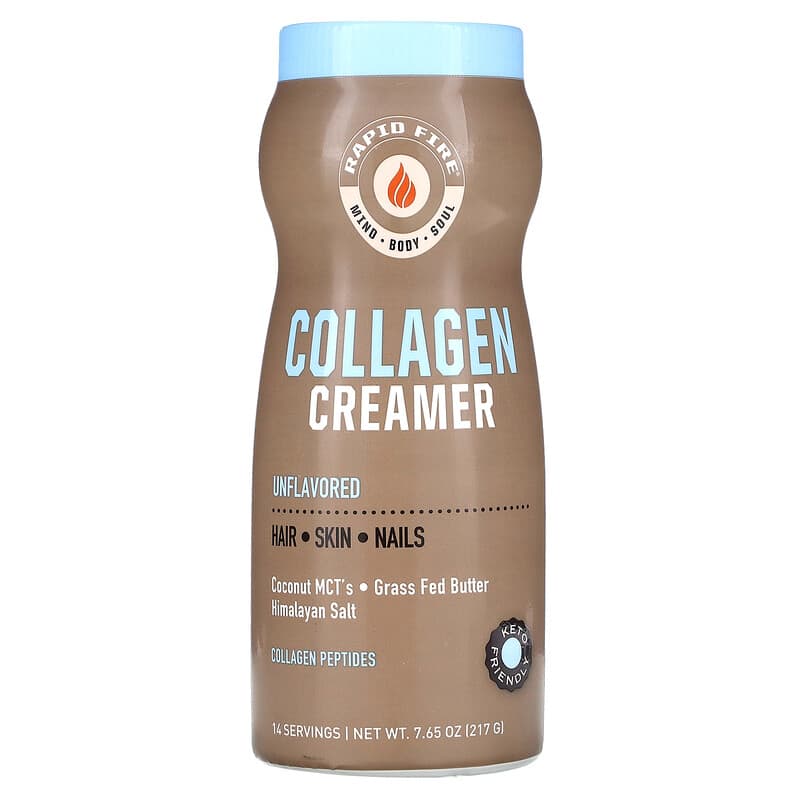 Mind – Body – SoulHair – Skin – NailsCoconut MCT’sGrass Fed ButterHimalayan SaltCollagen PeptidesKeto FriendlyOne of the most well-known benefits of collagen is its ability to promote glowing, vibrant skin. This essential protein provides elasticity to the skin, helping it to appear more youthful and healthy. RapidFire® Collagen Creamer combines coconut oil combined with hydrolyzed collagen for a healthy delicious addition to your morning coffee.