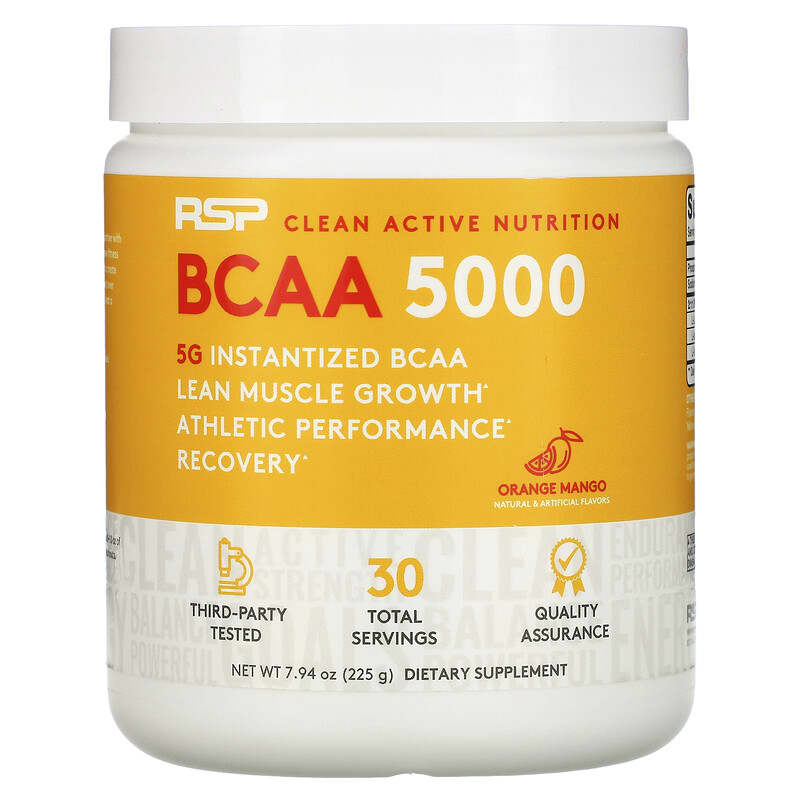 Thực phẩm bổ sung RSP Nutrition BCAA 5000 Instantized BCAAs Orange Mango 5.000 mg 7.94 oz (225 g) chính hãng RSP Nutrition, mã vạch 858491007332, nhập khẩu từ Mỹ