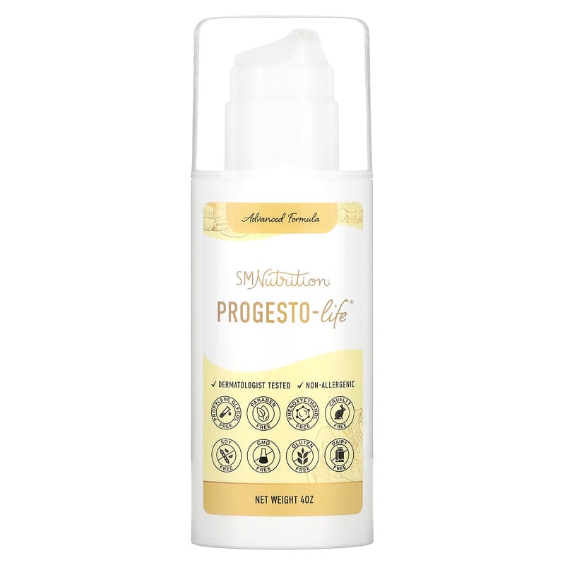 Dermatologist TestedNon AllergenicPropylene Glycol FreeParaben FreePhenoxyethanol FreeCruelty FreeSoy FreeGMO FreeGluten FreeDairy FreeLeaping Bunny CertifiedBuild On Trust. Crafted With Care®3rd Party Tested GMP Certified FacilityManufactured in a FDA Manufactured FacilityWhy women love SMNutrition’s formula. Each 4oz. pump contains 2, 000mg of Micronized, USP progesterone. Each serving contains ~21mg. With twice-daily servings and high-quality ingredients, our cream is intentionally formulated for optimal balance at midlife. Like every product from SMNutrition, Advanced Formula Progesto-Life is extensively tested. Every batch is third-party tested and manufactured in FDA-Registered facilities that adhere to GMP guidelines.