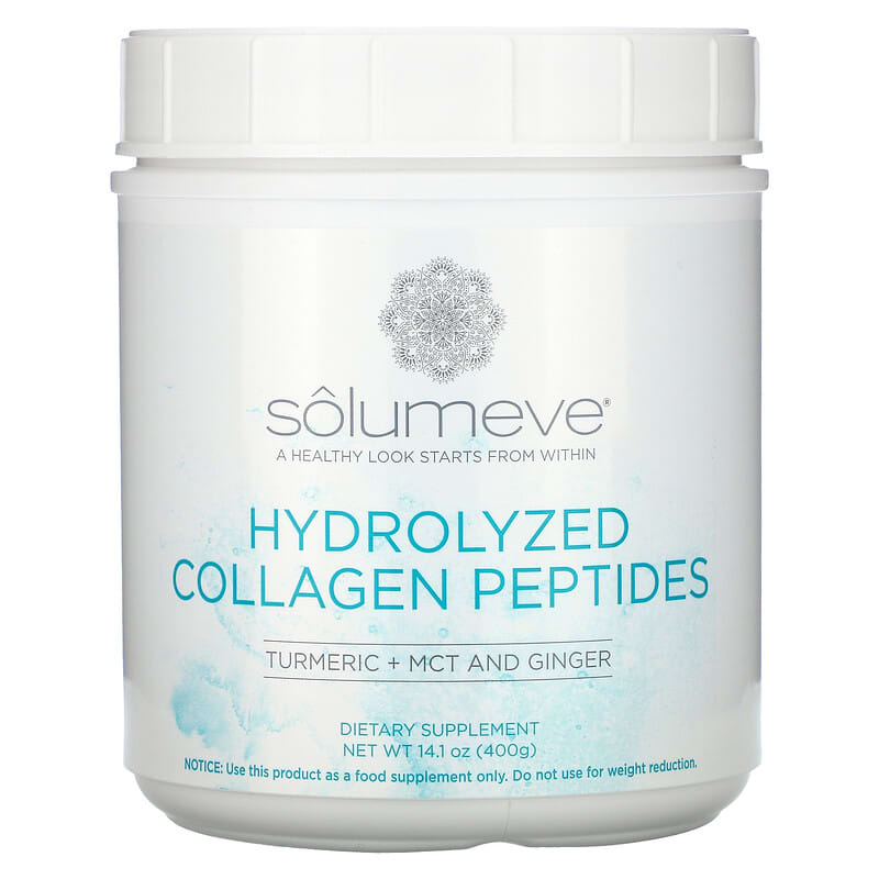 Sôlumeve Hydrolyzed Collagen PeptidesFeaturing Turmeric, MCT, and GingerUnflavored Powder Supplement Adds Easily to BeveragesSupports Healthy Hair, Skin, and Nails*Supports Healthy Immune and Antioxidant Function*No Artificial Colors, Flavors, or SweetenersFormulated without Gluten, GMOs, or Soy Dietary Supplement Produced in a cGMP Facility