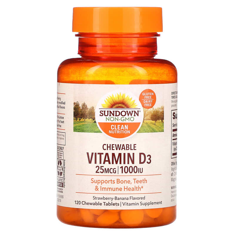 Thực phẩm bổ sung Sundown Naturals Chewable Vitamin D3 Strawberry-Banana 25 mg (1.000 IU) 120 ChewableTablets chính hãng Sundown Naturals, mã vạch 030768503567, nhập khẩu từ Mỹ