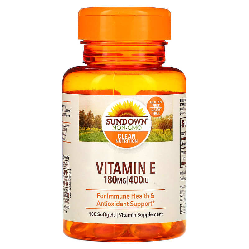 Thực phẩm bổ sung Sundown Naturals Vitamin E 180 mg (400 IU) 100 Softgels chính hãng Sundown Naturals, mã vạch 030768032685, nhập khẩu từ Mỹ