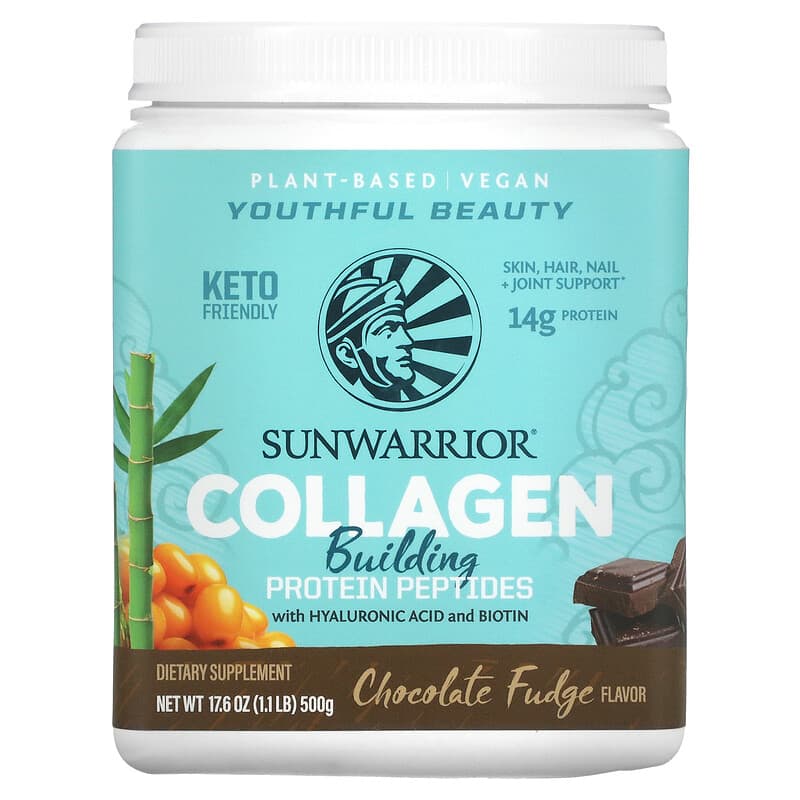 Thực phẩm bổ sung Sunwarrior Collagen Building Protein Peptides Chocolate Fudge 1.1 lb (500 g) chính hãng Sunwarrior, mã vạch 814784026534, nhập khẩu từ Mỹ