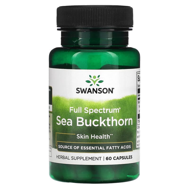 Skin HealthSource of Essential Fatty Acids Herbal Supplement Total Wellness for Mind, Body & HomeUnsurpassed Purity & PotencyScience-Backed Quality Since 1969Support skin and gastric health with Swanson Sea Buckthorn! Sea buckthorn has a long history of being used as food, but it has also been traditionally used to support skin health and mucous membrane health. Sea buckthorn is a source of essential fatty acids. Its potent antioxidant properties support overall health and well-being.
