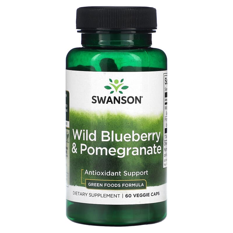 Antioxidant SupportGreen Foods Formula Dietary Supplement VegetarianTotal Wellness For Mind, Body & HomeUnsurpassed Purity & PotencyScience-Backed Quality Since 1969Reap the benefits of both blueberry and pomegranate with Swanson Green Foods Formulas Wild Blueberry + Pomegranate. Blueberry is a food source of vitamin C, vitamin K, fiber and manganese for healthy bone and joint support. Pomegranate features niacin for metabolic support. This dynamic duo of antioxidant-rich fruits provides support for cardiovascular and digestive health, as well as promoting energy production and healthy cognitive function.