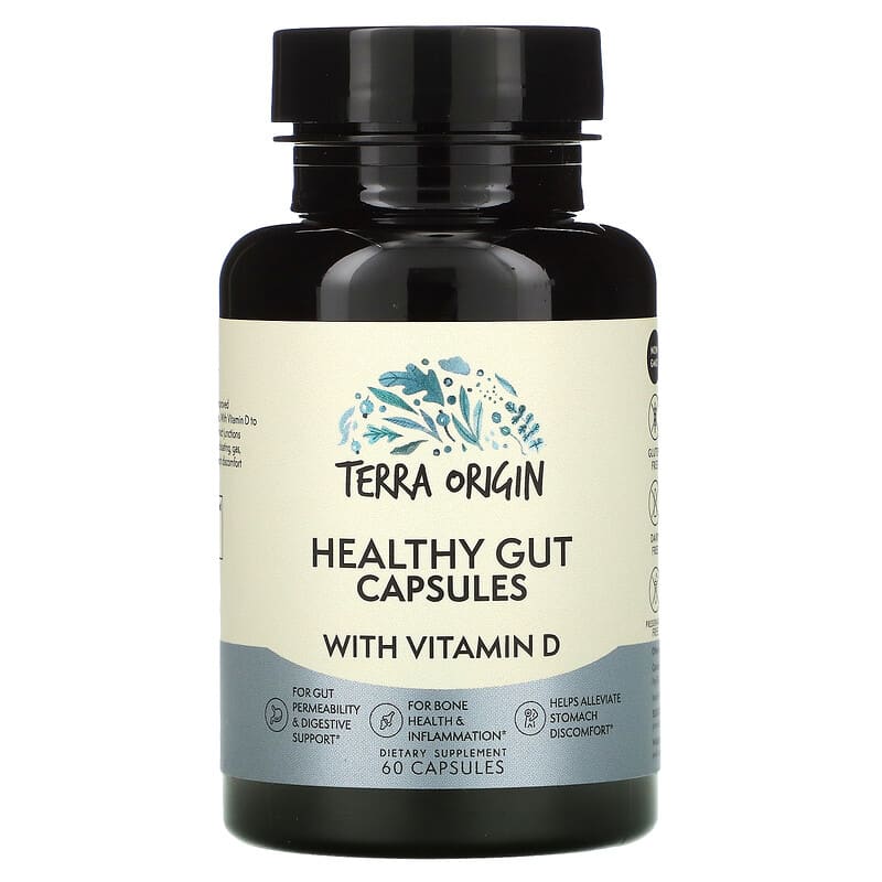 Thực phẩm bổ sung Terra Origin Healthy Gut Capsules with Vitamin D 60 Capsules chính hãng Terra Origin, mã vạch 857668007281, nhập khẩu từ Mỹ
