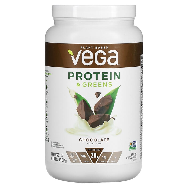 Plant-BasedGluten FreeGreens20 g Protein*120 Calories*1 g Sugar*Non GMO Project VerifiedDrink MixCertified B CorporationMade with Real Plant-Based Food IngredientsShake up your smoothie routine with the addition of spinach and kale. Vega® Protein & Greens helps power your day with real food nutrition. The Vega Protein & Greens PromiseGluten FreeVeganNo Added SugarsNo Artificial Colors, Flavors or Preservatives*Per 33 g Serving