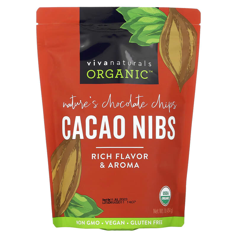 Nature’s Chocolate Chips Rich Flavor & Aroma USDA Organic Non GMO Project VerifiedVeganCertified Gluten Free Certified Organic by QAI Certified PaleoKosher Keto Certified Dairy Free A Wealth of Wellness™We Make Wellness Possible™Harvested from the lush and fertile lands of the Amazon rainforest and lightly roasted for peak flavor, these dark and decadent bites are known as “nature’s chocolate chips. ” Made with the highest grade Peruvian Criollo cacao beans, Viva Naturals Cacao Nibs are a guilt-free way to add chocolatey crunch to your favorite snacks and treats.