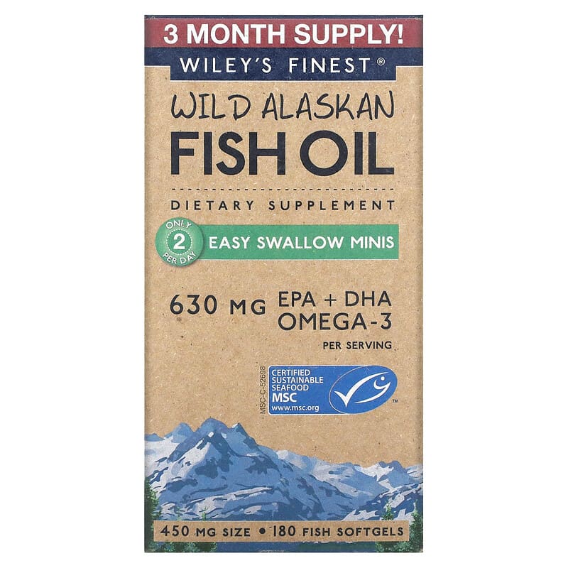 Wiley's Finest Wild Alaskan Fish Oil Easy Swallow Minis 450 mg 180 Fish Softgels chính hãng