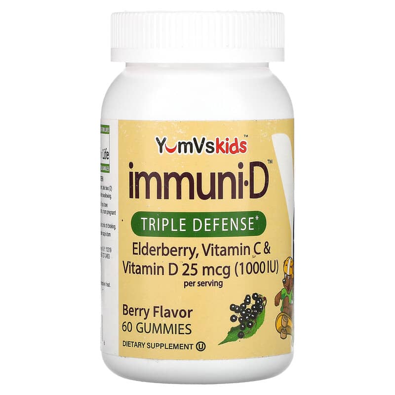 Yum-Vs Kid's Elderberry Vitamin C & Vitamin D Triple Defense Berry 25 mcg (1.000 IU) 60 Gummies chính hãng